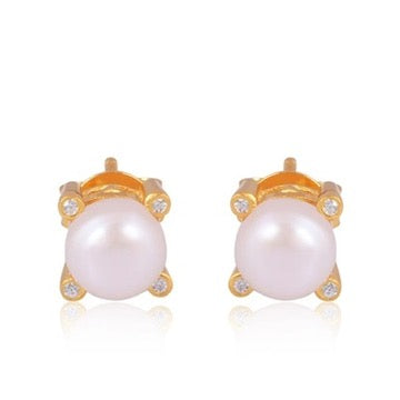 f you have been looking for the perfect everyday stud, look no further! These pearl studs are gorgeous. The small CZ stones add just enough to elevate the look, and make them unique! Made of 18k gold plated sterling silver, these are great quality for everyday wear.