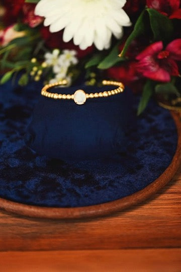 This beaded cuff features 1 oval stone and is available in 4 colors